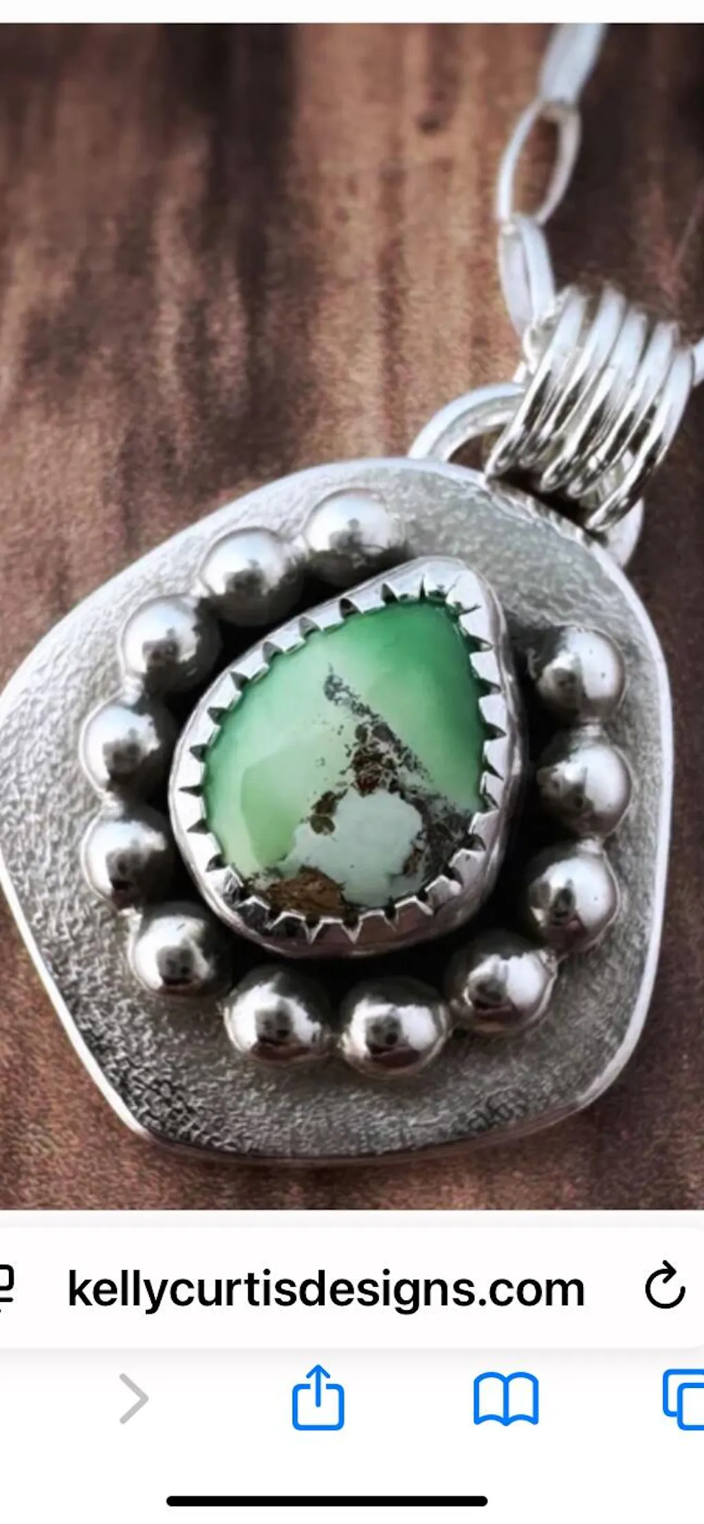 I saw this necklace and fell in love with the stone set in such a beautiful setting. The beaded horseshoe around the stone really helps to show it off. I have purchased several other pieces from this artist and I’ve never been disappointed. Her jewelry is even more beautiful in person. All my jewelry has arrived quickly. Kelly has also been very friendly anytime I’ve had to message her and ask questions. She is definitely my favorite artist to buy jewelry from.
