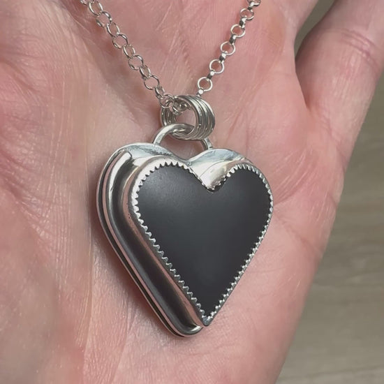 Black Jade Actinolite Heart Necklace with Spider